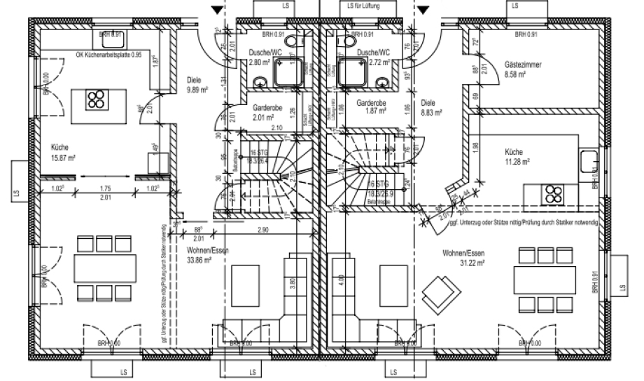 Eckdaten des Doppelhauses: